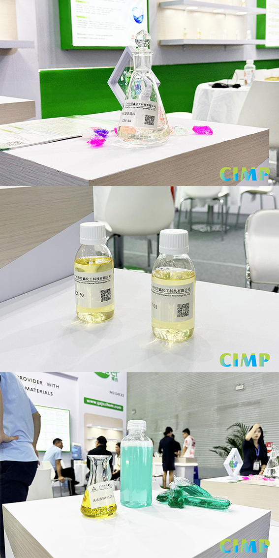 此次君鑫重点展示了多款绿色、安全、高效的环保型表面活性剂,以及功能性添加剂等。展品以其卓越性能、环保理念和广泛用途,得到业内外的高度赞誉。特别是新研发的洗衣凝珠基料,成为了争相询问的明星产品。