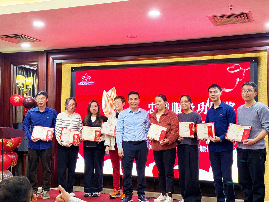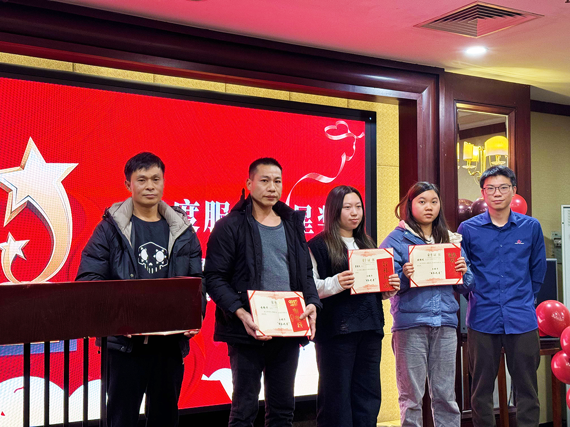 在表彰环节,为感谢员工们的辛勤付出,公司设置7个奖项:忠诚服务功勋奖、年度优秀管理者、年度销售冠军团队奖、年度优秀员工奖、年度金算盘奖、年度服务之星奖、优秀新人奖。当获奖者们满怀激动地走上舞台,接过象征荣誉的证书时,台下掌声雷动。这是对他们过去一年工作的高度肯定,也是对全体员工的激励与鞭策。
