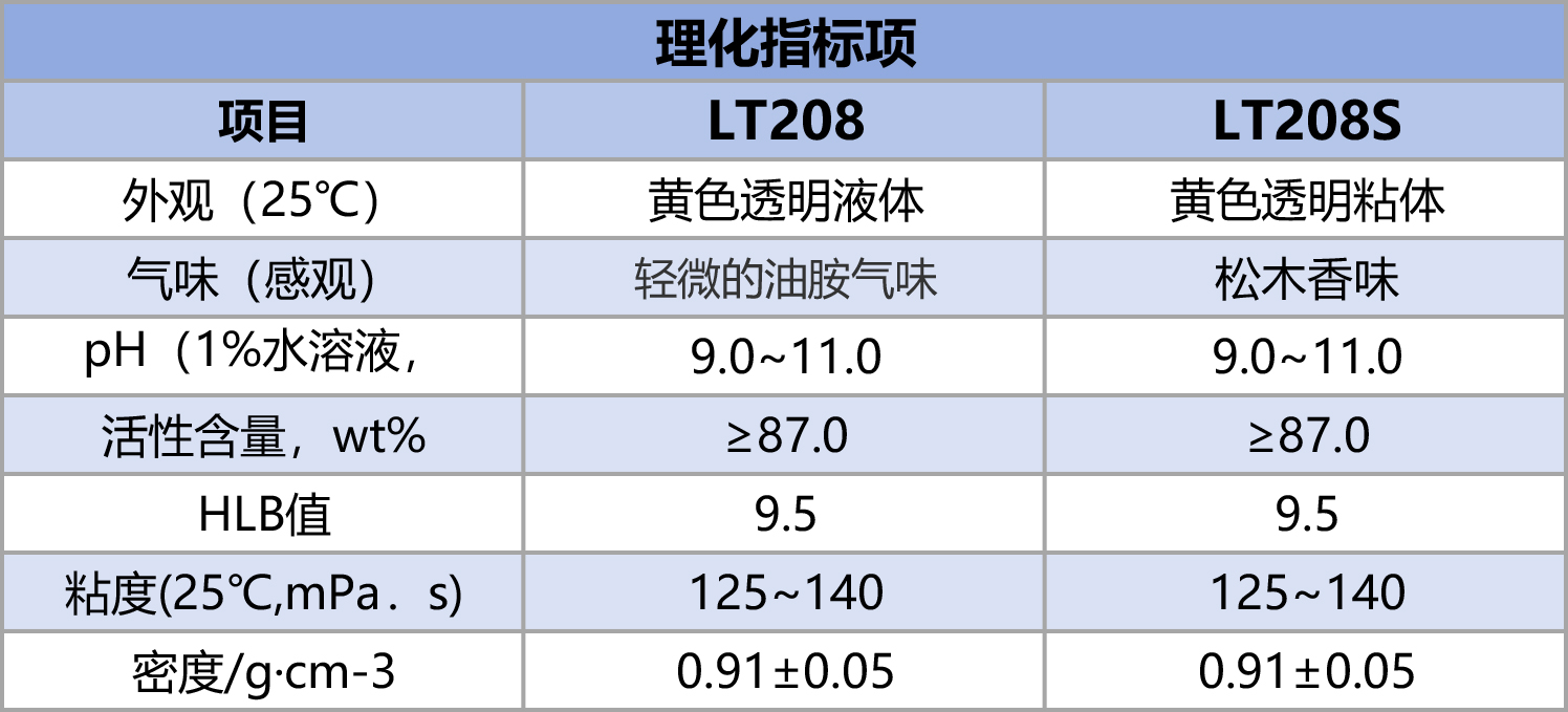 性质:Byfuel LT208是一款阳非离子表面活性剂,常温下呈黄色透明液体,易溶于水耐高温,主要应用于强酸体系(如盐酸、磷酸)的增稠,增稠后的产品挂壁性好,透明稳定不返稀。不含烷基酚(APEO)、有机溶剂及有害单体残留,低刺激性,生物降解性高,易过水处理。